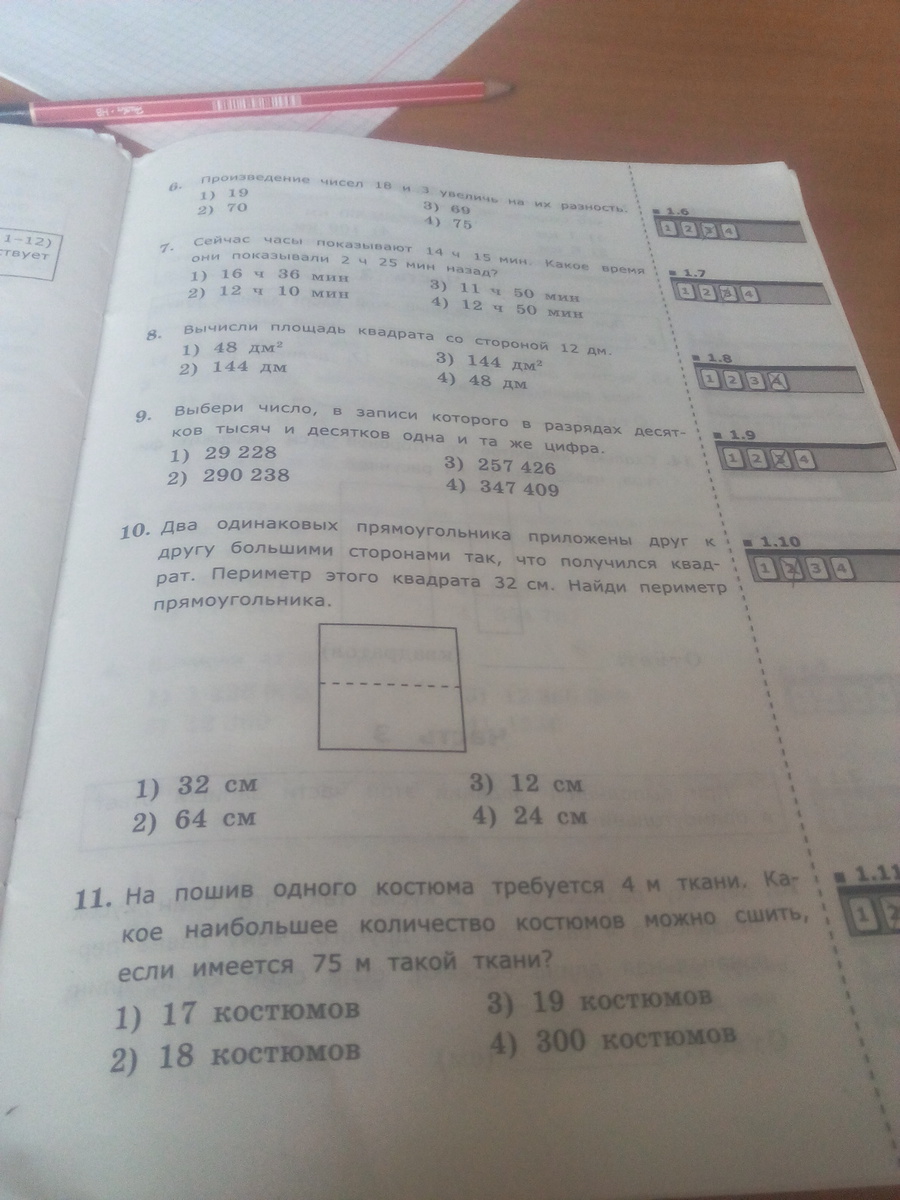 32:4 = 8(см) длина прямоугольника и сторона квадрата