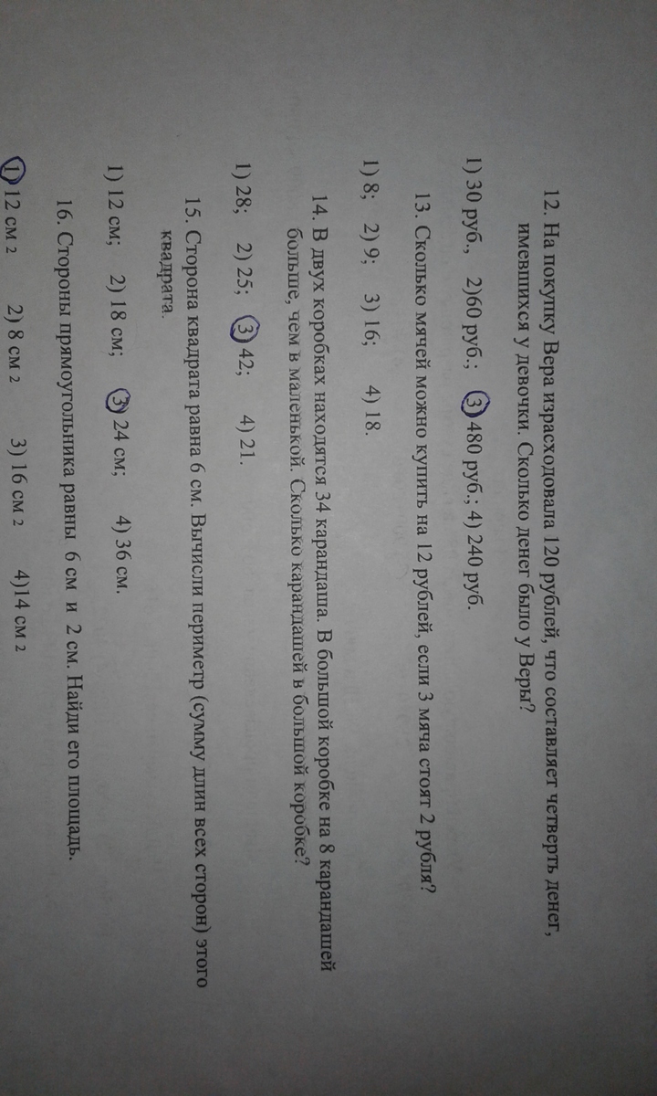 Ответ 4, 18 мячей. 12 рублей= 6 покупок по 3 мяча, следовательно 6*3=18