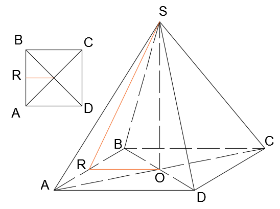 Угол SRO равен углу φ, SO = h (использовал свои обозначения, т.к. некоторые символы не отображались в формулах)