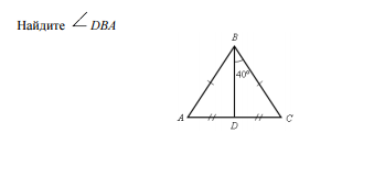 Даже неудобно. Треугольник по условию - равнобедренный, так как АВ=ВС. Тогда медиана, которая делит противоположную сторону пополам (АД=ДС), является и биссектрисой. Ну, тогда эта крыса делит угол пополам.Значит, угол ДВС = углу ДВА и равен 40 градусам