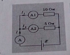 в электрической цепи сила тока через амперметр А равна 3А. сопротивление резисторов R1=10 ом и R2=5ом. внутренним сопротивлением амперметров и источника тока можно пренебречь. найти силу тока I1, протекающего через амперметр А1