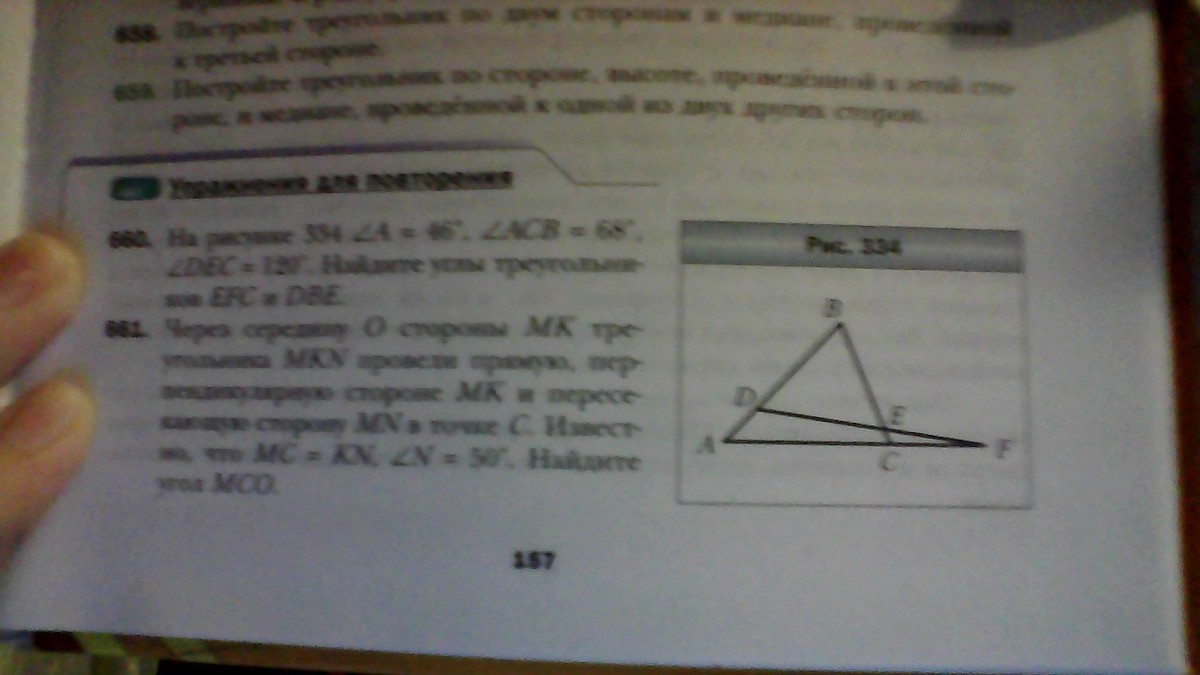 Теперь находим угол EFC: 180-60-112=8 градусов