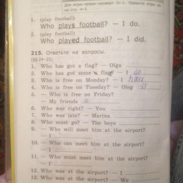1)Olga has,2)I have,3)I am,4)Oleg is,5)My friends are,6)You were ,7)Marina was,8)The boys must,9)I will,10)I can,11)I must,12)I was,13)We were