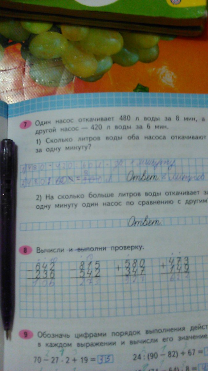7.2) 70-60=10 л на столько 2 насос откачивает воды больше за 1 мин, чем 1 насос за 1 мин.
