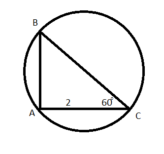 Найдите длину окружности, описанной около прямоугольного треугольника с катетом равным 2 и прилежащим углом равным 60.