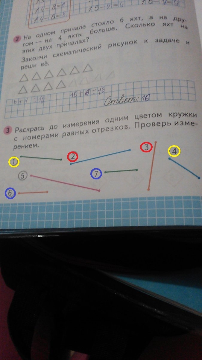 Раскрась до измерения одним цветом кружки с номерами равных отрезков проверь измерением