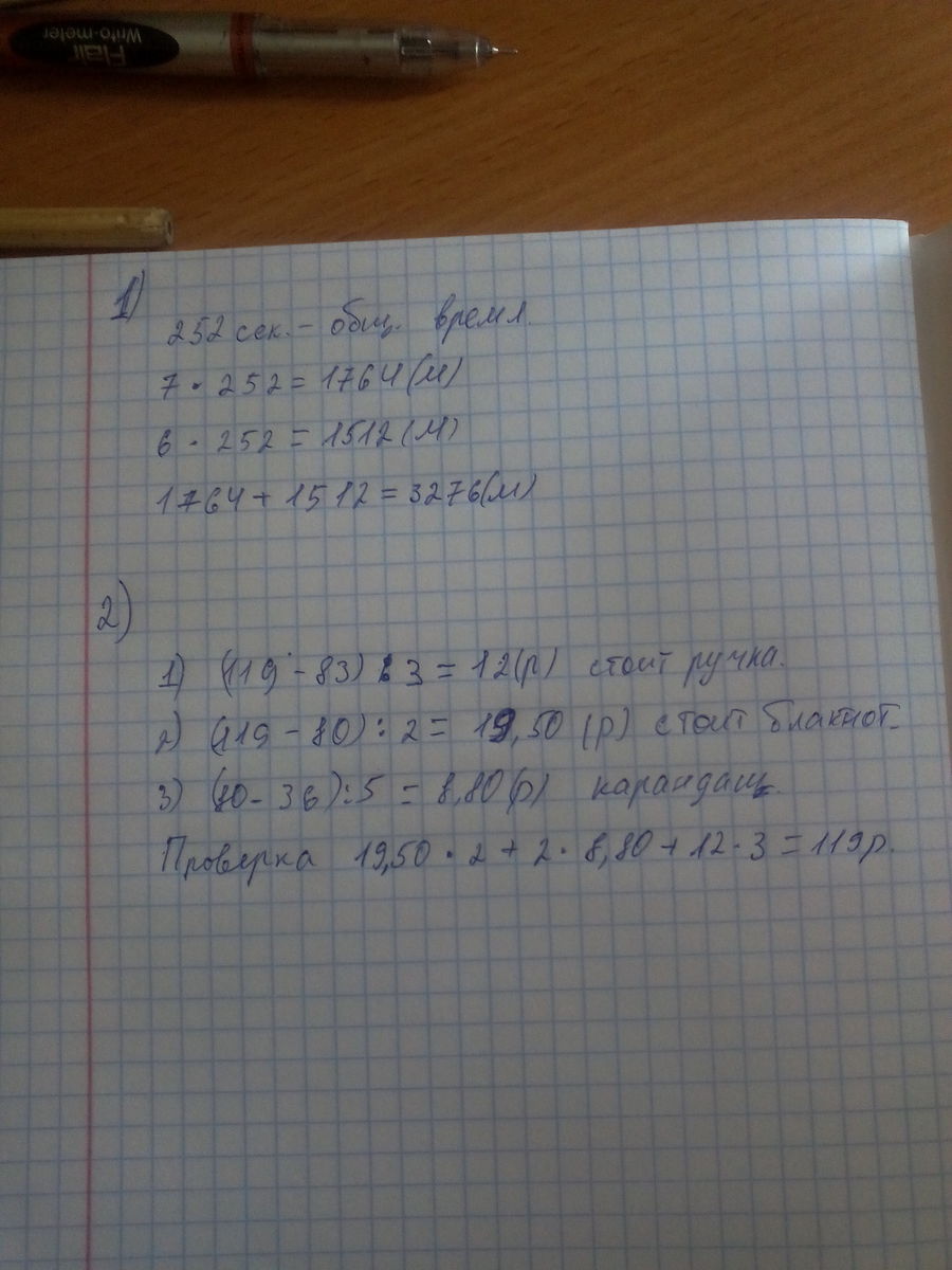 2)За два блокнота , 5 карандашей и 3 ручки заплатили 119 руб. Найди цену блокнота, карандаша и ручки, если за 2 блокнота и 5 карандашей заплатили 83 рубля, а за 5 карандашей и 3 ручки - 81 рубль