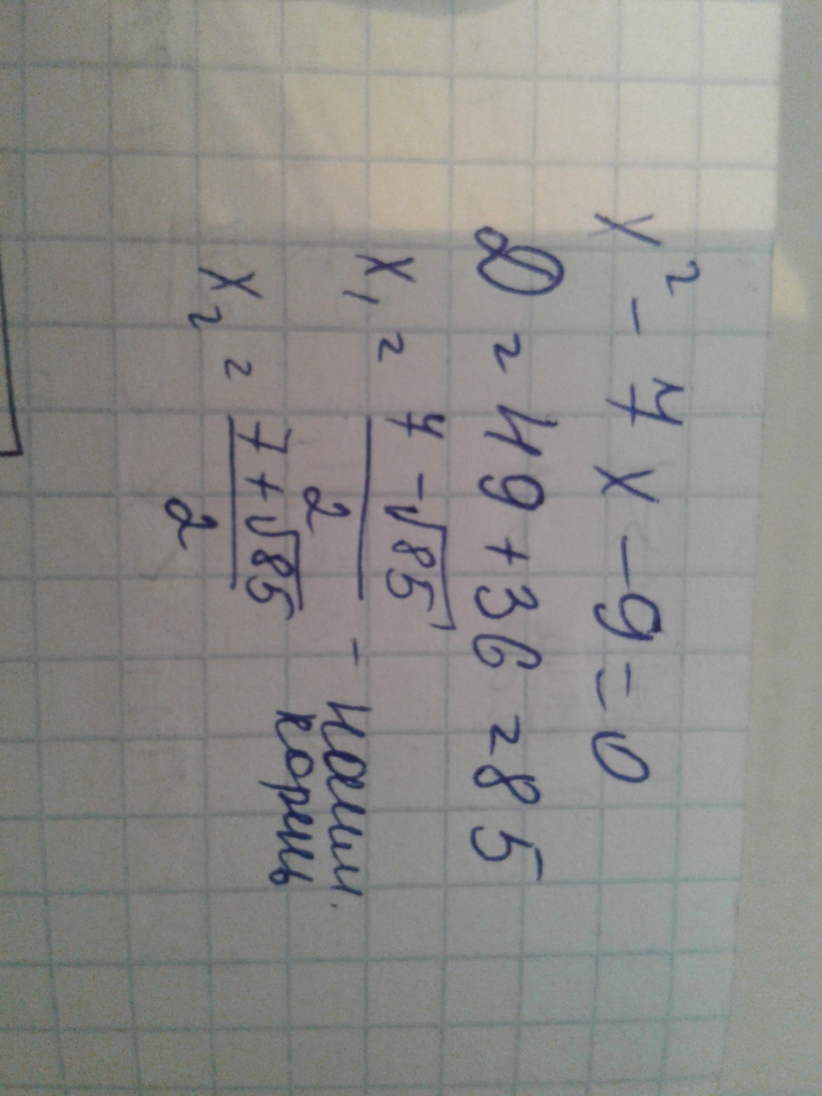 найдите корни уравнения, в ответе укажите меньший из них x2^2-7x-9=0
