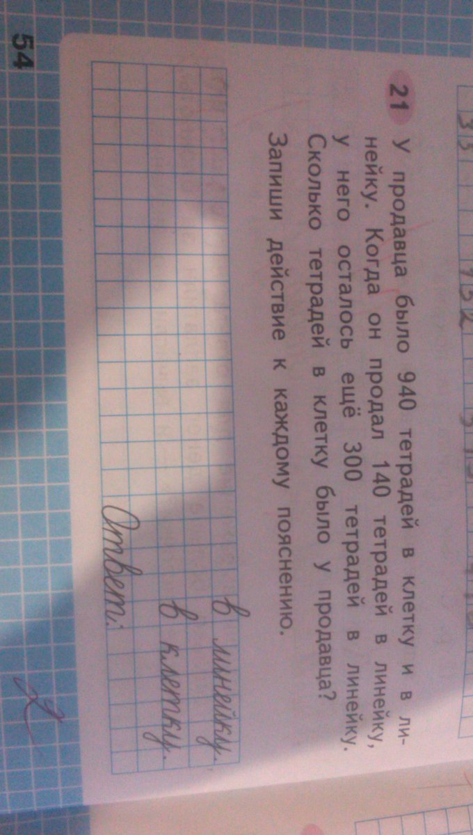 1. 140+300=440 (шт) было всего тетрадей в линейку