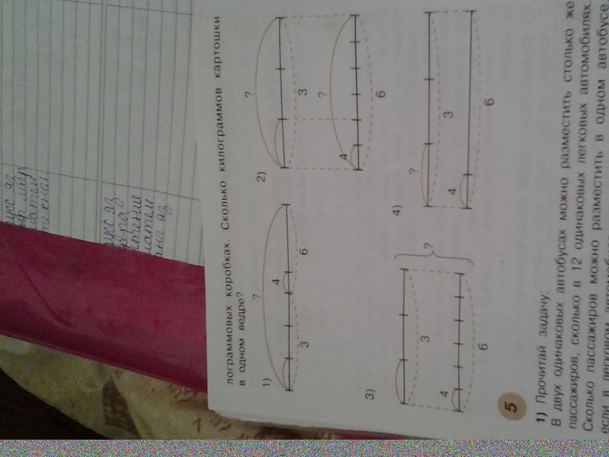 подбери подходящую к данной задаче схему. Реши задачу: в трёх одинаковых вёдрах столько же килограммов картошки, сколько килограммов вишни в 6 одинаковых четырёхкилограммовых коробках сколько килограммов картошки в одном ведре?