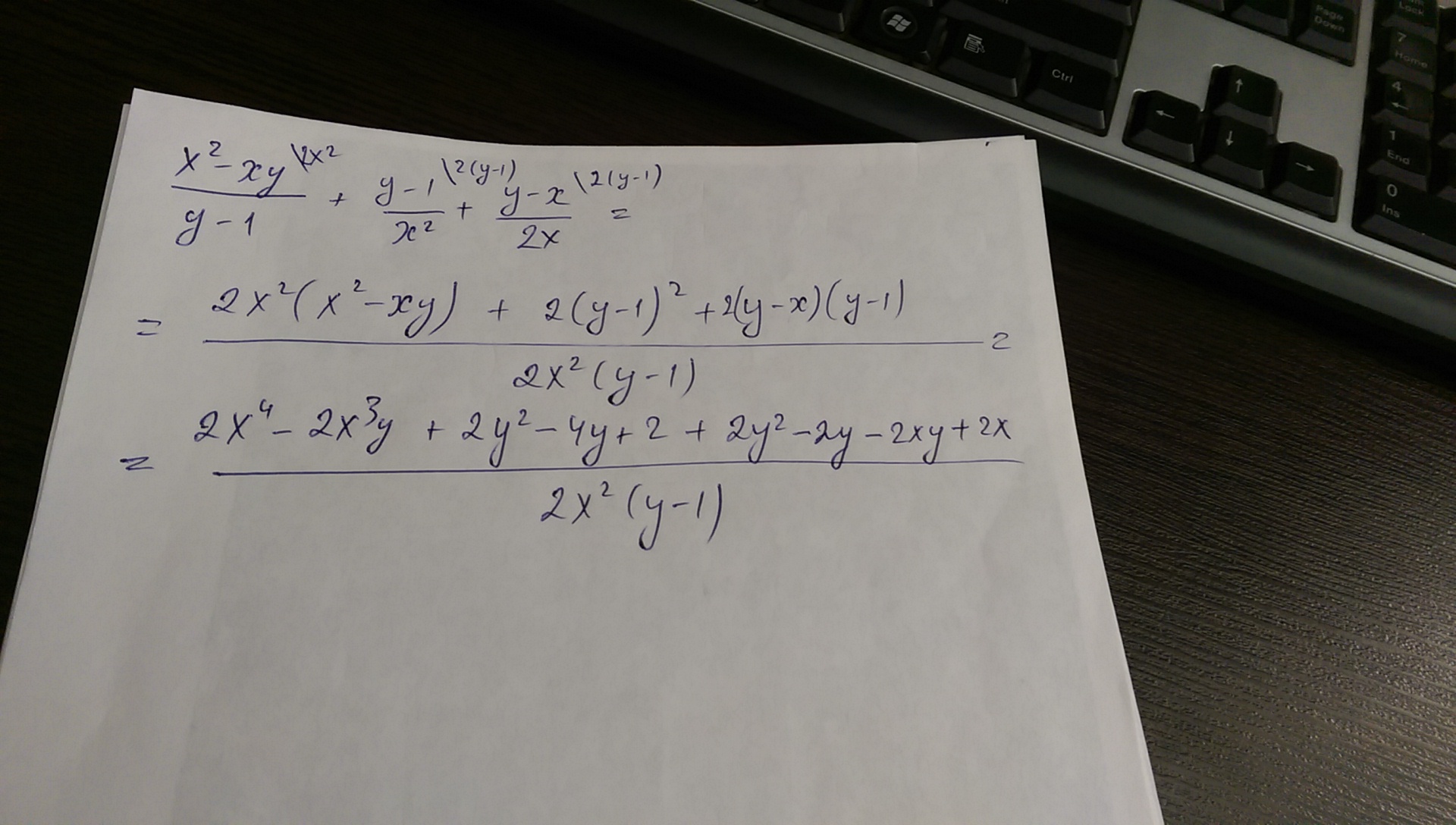 проверил пример. не хватает х в третьем выражении 2х(у-х)(у-1) при раскрытии дает 2ху^2-2ху-2х^2y+2x^2