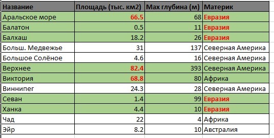 (Материк = «Евразия») ИЛИ (Площадь (тыс. км2) > 25)?