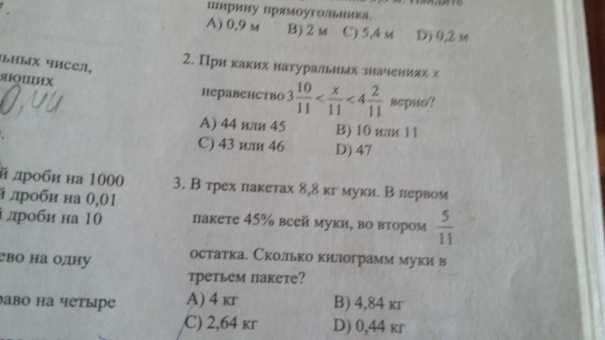 3) в 3-ем пакете 2,64 кг муки
