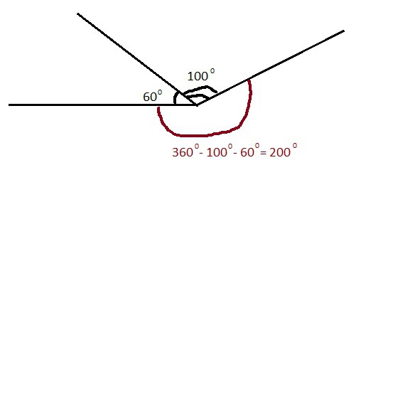 Два развернутых угла дают 360° ⇒ чтобы определить оставшийся угол, необходимо из 360° вычесть градусные меры двух оставшихся углов.