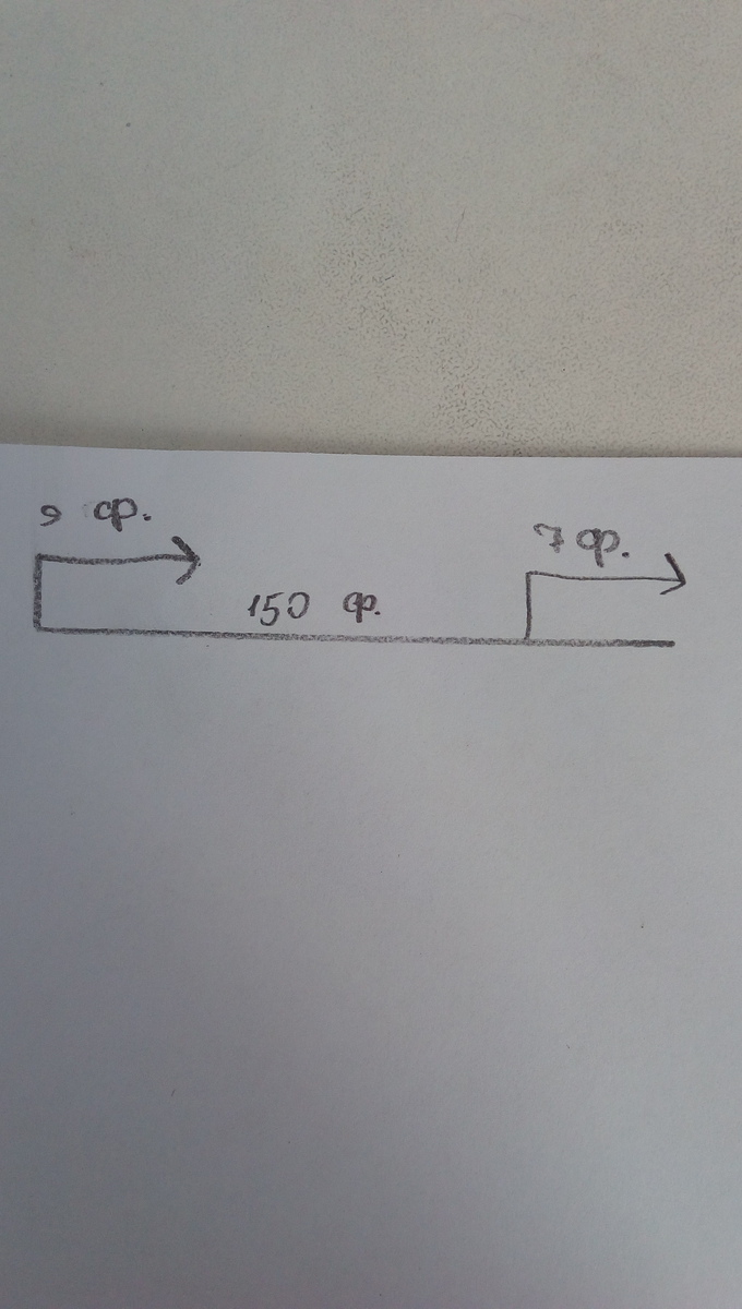 Собака погналась за кроликом,находящимся от неё в 150 футах.Она делает прыжок в 9 футов каждый раз,когда кролик делает прыжок в 7 футов.Сколько прыжков