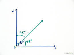 Чтобы построить угол в 45 градусов, нарисуй угол 90 градусов и раздели на две части.