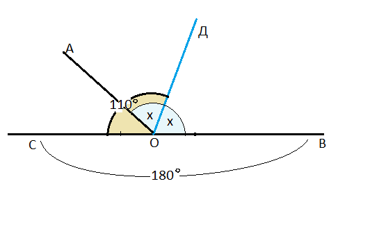 кут між бісектрисами кута і продовженням однієї із його сторін дорівює 110 градусів, знайдіть даний кут