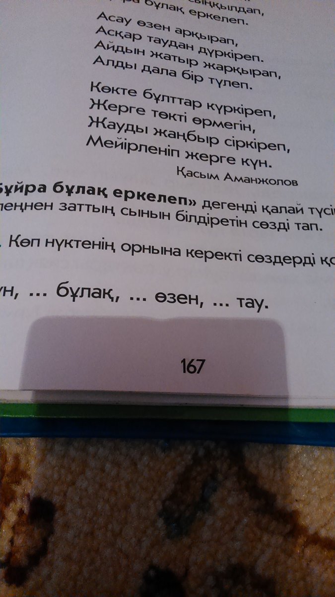 Жоғарыда берілген өлең бойынша тиісті сөздерді қойып жазу: