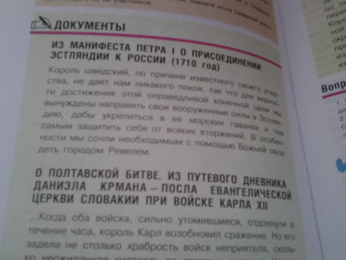 1.Чем объясняет царь Петр в своем манифесте необходимость примоеденения Эстляндии к России?