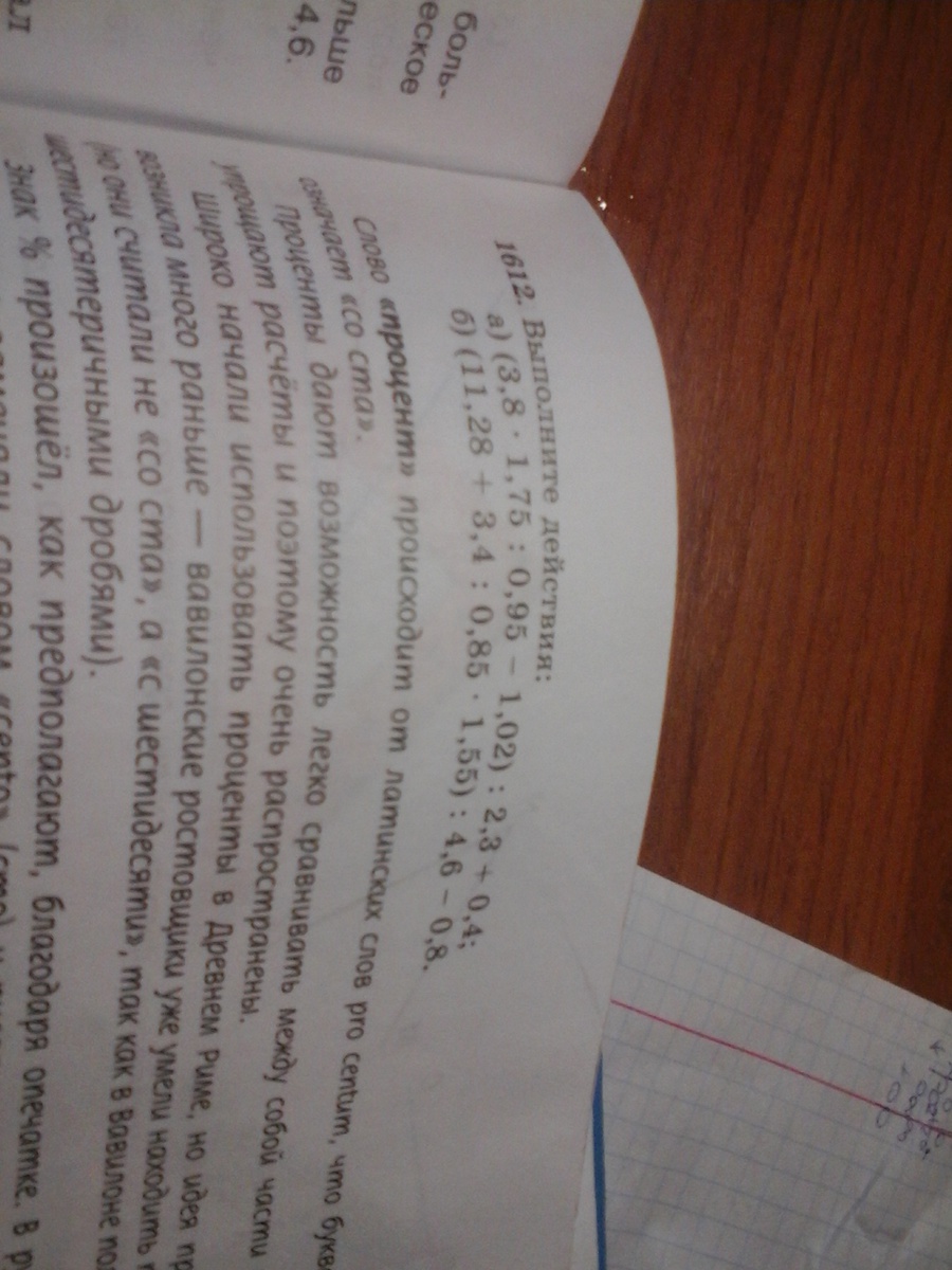 1)(3,8·1,75÷0,92-1,02)÷2,3+0,4=(6,65÷0,92-1,02)÷2,3+0,4=5,98÷2,3+0,4=2,6+0,4=3