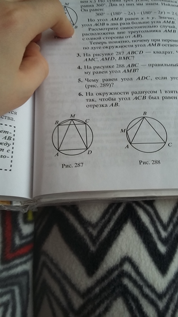 На рисунке 288 АВС правильный треугольник. Чему равен угол АМВ?