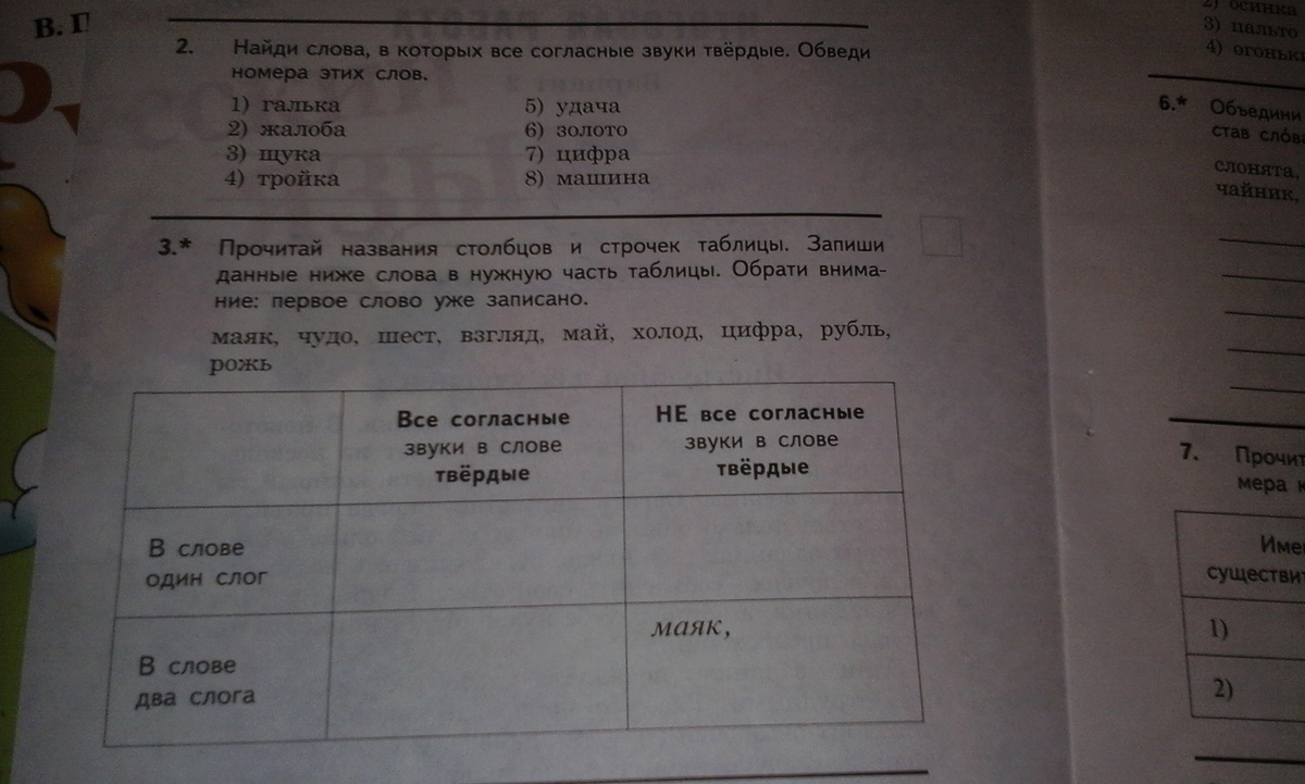 Помогите с 3-етем заданием.Запишыте даные нужные слова в нужную часть таблицы обратите внимание первое слово записано