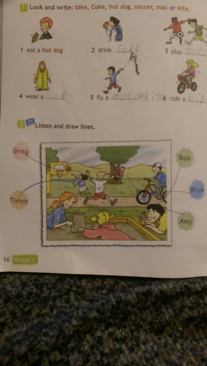 вставить слова в номере 1 а в номере 2 нарисовать линиями к каждому человеку