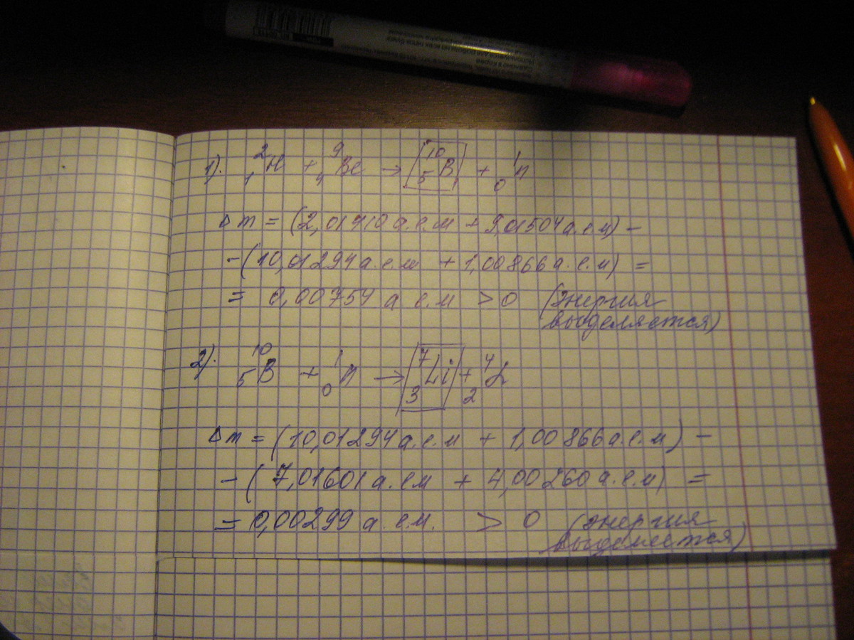 1)При взаимодействии атомов дейтерия с атомом бериллия Be испускается нейтрон. Напишите уравнение ядерной реакции. Поглощается она или выделяется. Массы взять из справочных данных.