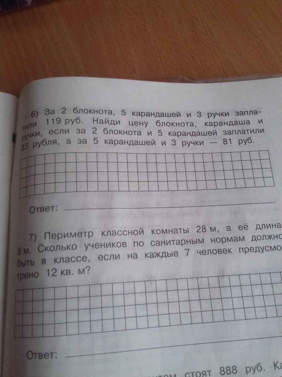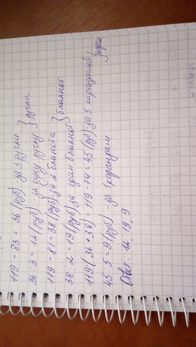 За 2 блокното и 5 карандашей и 3 ручки заплатили 119 рублей . Найди цену блокнота , карандаша и ручки , если за 2 блокнота и 5 карандашей заплатили 83 рубля , а за 5 карандашей и 3 ручки - 81 руб..