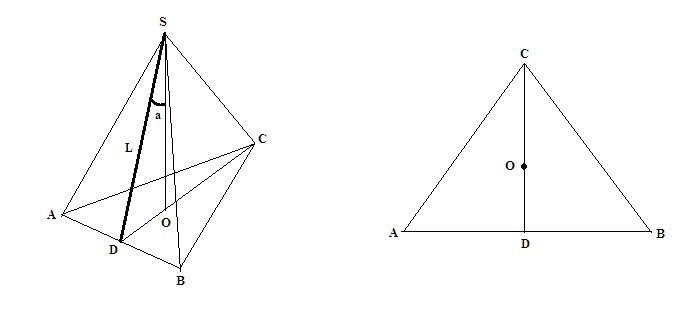 Из прямоугольного треугольника SDO ясно, что OD = L*sin α
