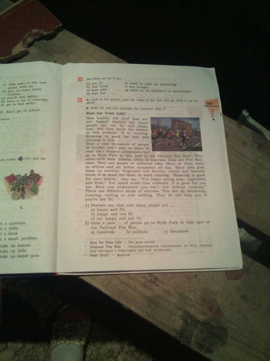 Как Вы здоровы? А ты счастлив? Врачи говорят, что многие люди не подходят и теперь счастлив. Но они знают ответ на эту проблему. Он работает работает хорошо для вас и работает весело. Раз в год тысячи людей в Лондоне не оставаться дома, чтобы читать их воскресные газеты, но идут в Гайд-парк, чтобы принять участие в Национальном Fun 1 приходят туда со своими друзьями, часто в семьях. Они ЧПЧ. Это люди разных рабочих мест, многие в офисах и посидеть перед компьютерами в течение всего дня. Их них нет упражнений. Инженеры и врачи, медицинские сестры мозговым это хорошо для них, чтобы начать работать. "Runn для вашего здоровья", говорят они. "Вы начинаете есть больше и фрукты. Вы проводите много времени на открытом воздухе. Это г тоже. Скоро вы понимаете, вы не можете жить withou Существуют различные виды упражнений. Вы можете сделать бег, езда на велосипеде или просто ходить. Все они будут тебе" повторно не подходит.
