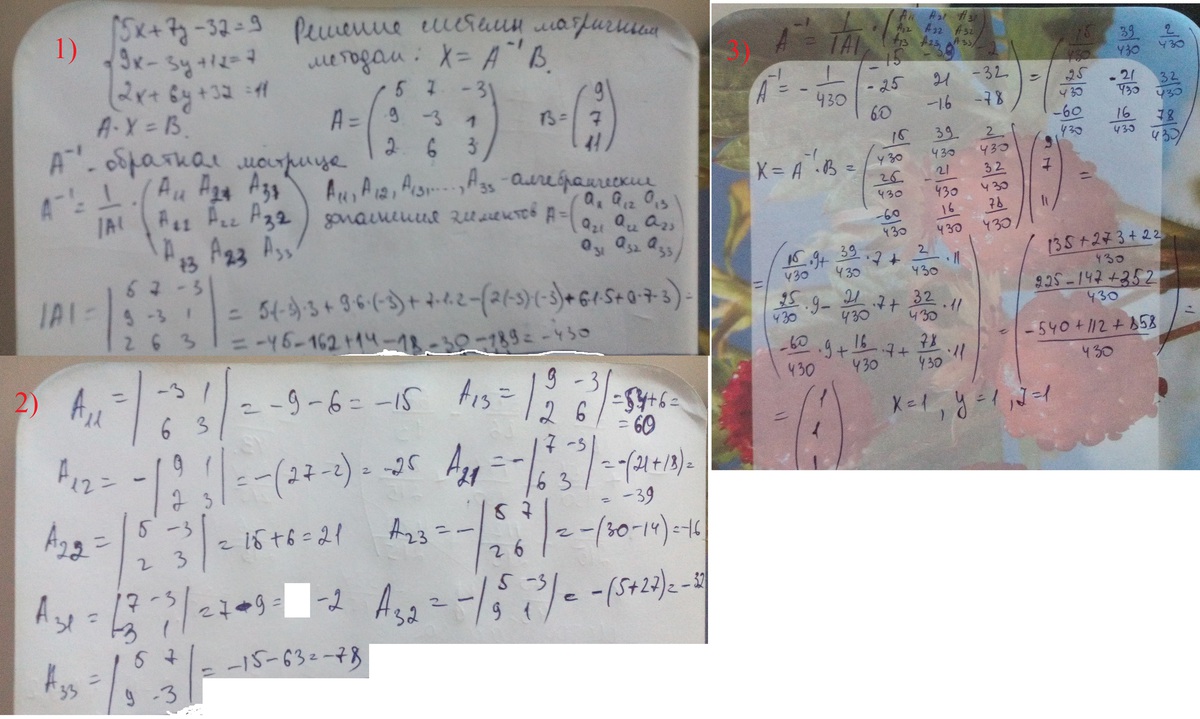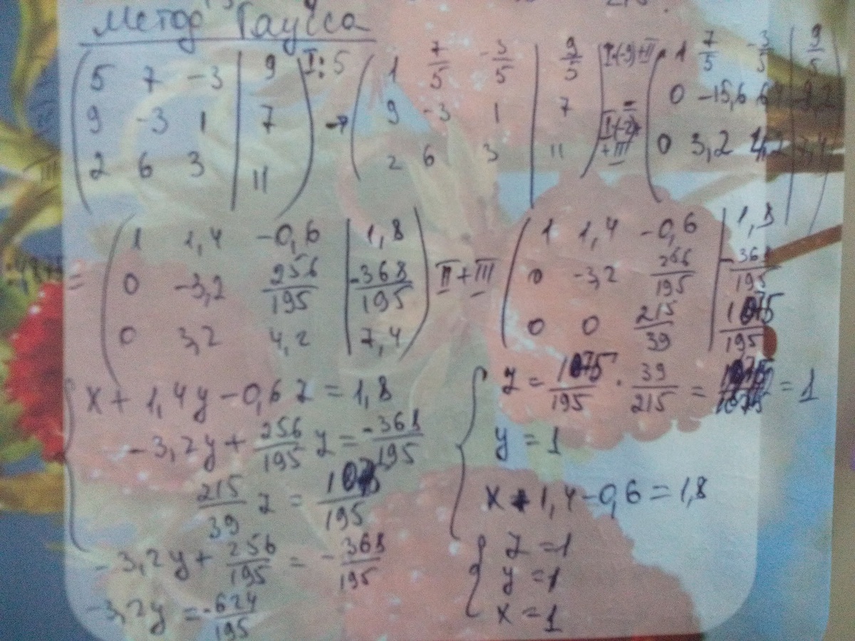 Решить систему линейных уравнений матричным методом и методом гаусса. Желательно с комментариями :)