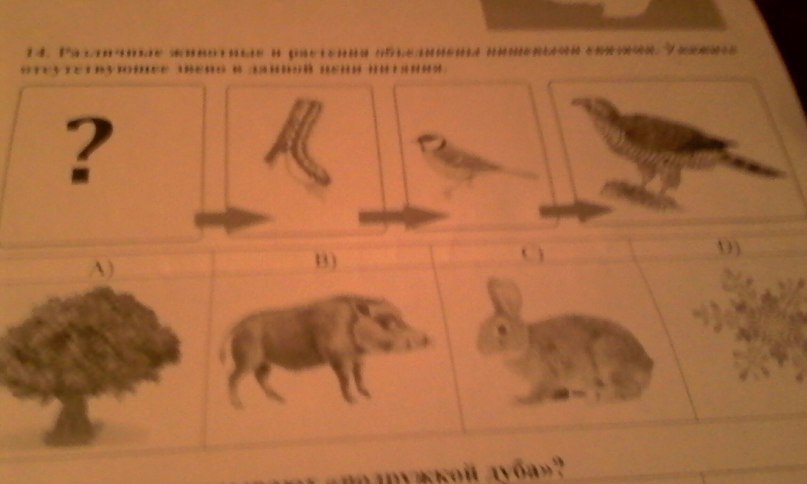 Различные животные и растения объединены пищевыми связями.Укажите отсутствующее звено в данной цепи питания