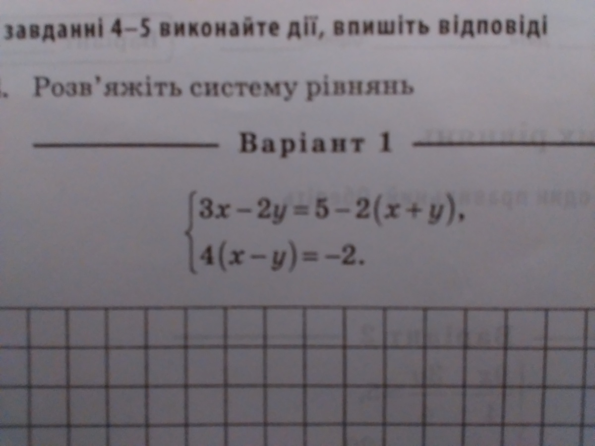 left { {{3x-2y=5-2x-2y} atop {4x-4y=-2}} right.
