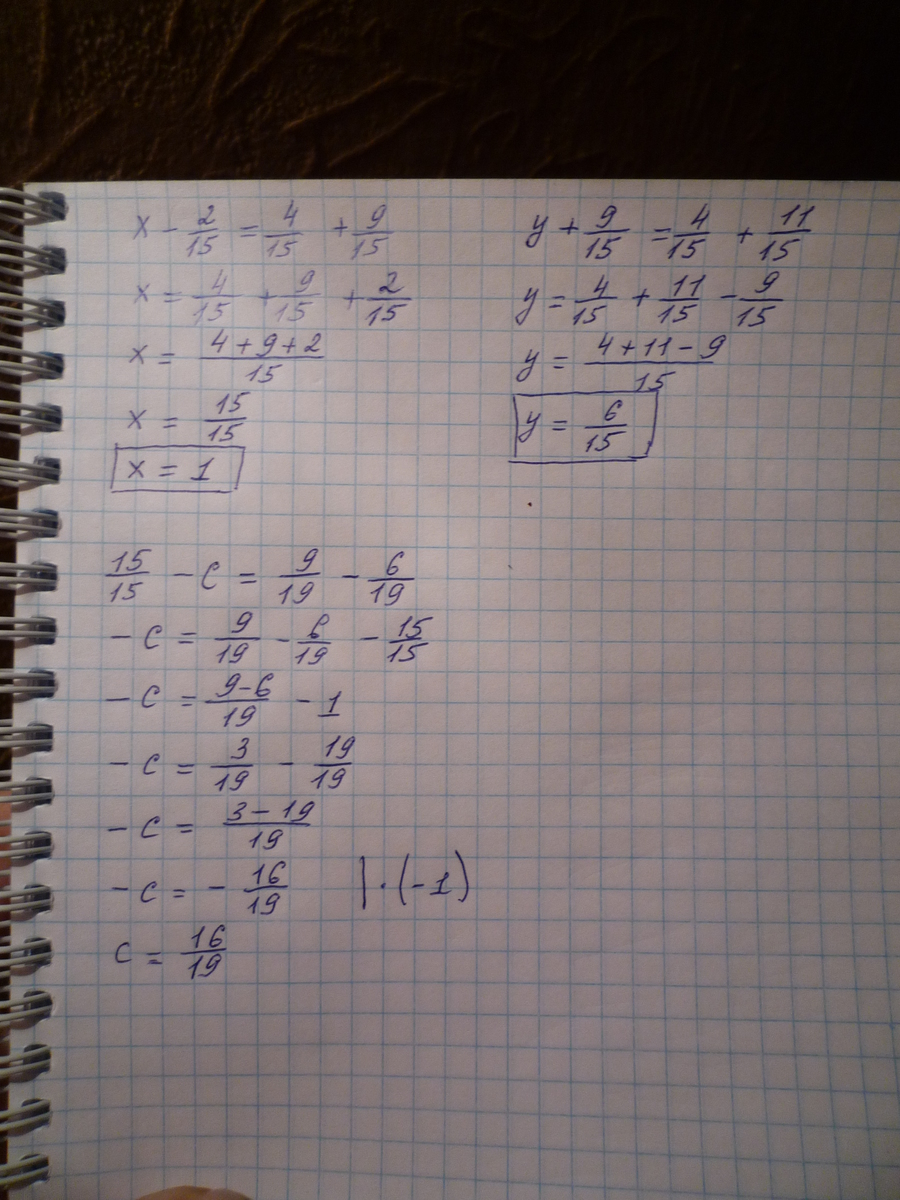 ПОМОГИТЕ СРОЧНО!!УРАВНЕНИЯ x-2_15(две пятнадцатых)=4_15(четыре пятнадцатых)+9_15