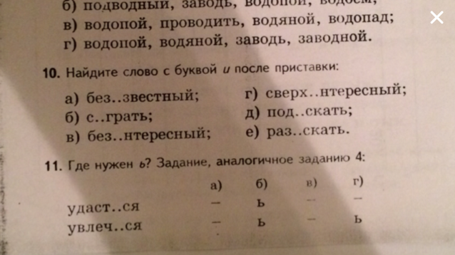 а) без известный б) с с играть в) без интересный г) сверх интересный д) под искать е) раз искать