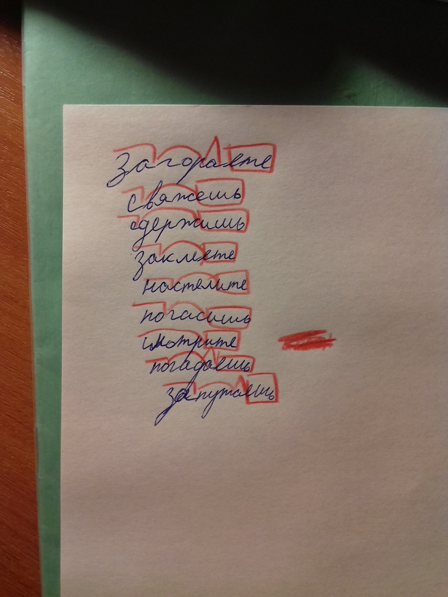 Загораете , свяжешь , сдержишь , заклеете, настелите , погасишь, смотрите , погадаешь , запутаешь. Разбирите слова по составу