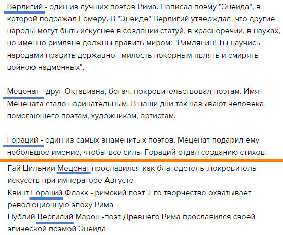 Гораций - поэт древнеримский поэт, Вергилий - тоже, Меценат, по видимомому меценат:) , какой-нибудь богач, финансирующий римскую культуру, Сенека - учитель императора Нерона и философ. Нерон потом приказал ему покончить с собой.Тит Ливий - .один из самых известных римских историков, автор чаще всего цитируемой «Истории от основания города»