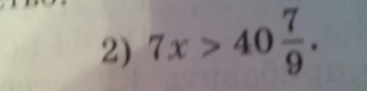 щоб знайти невідомий множник треба добуток поділити на відомий множник. тому х більше 40 7 девятих :7 х більше 40 цілих сім девятих помножити на одну сьому х більше (переведем у неправильний дріб) 56 девятих помножити на одну сьому буде х більше 8 девятих