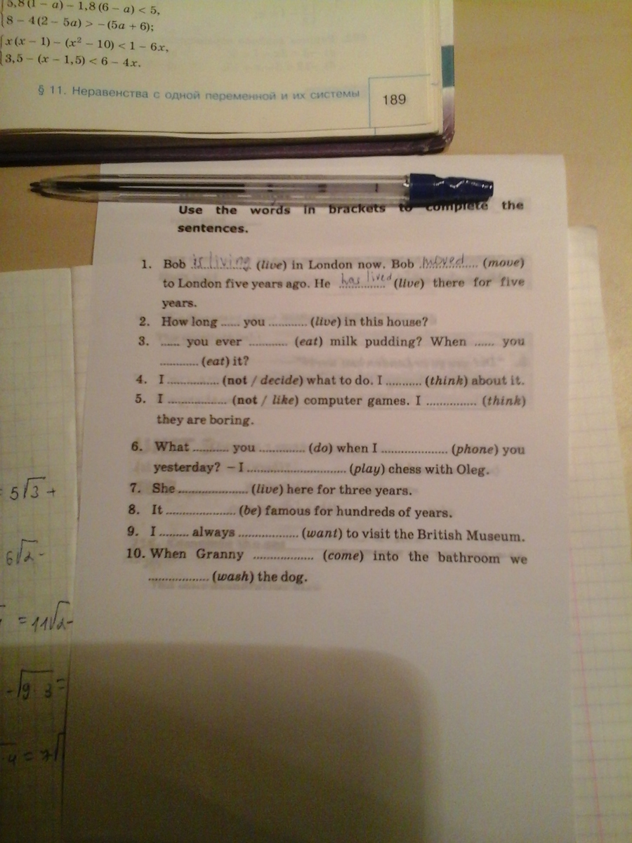 Bob is living…. in London now. Bob ….. (moved to London five years ago. He…has (livedthere for five years.2. How long have… you…been (living(have you lived) in this house?2. How long … you… (live) in this house?