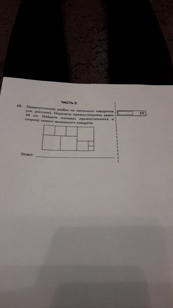 это не верно! я не знаю как правильно записать решение(((, но ответ 2см-сторона самого маленького квадрата, 180 кв.см. - площадь прямоугольника