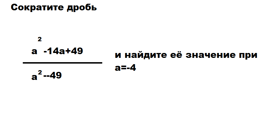... = (а-7)^2 / (а-7)(а+7) = (а-7) / (а+7) = (-4-7) / (-4 + 7) = -11/3