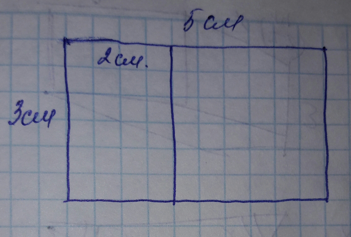 Начерти прямоугольник со сторонами 5см и 3см.Проведи прямую,чтобы она разбила этот прямоугольник на два прямоугольника так,чтобы площадь одного из них была равна 6см?
