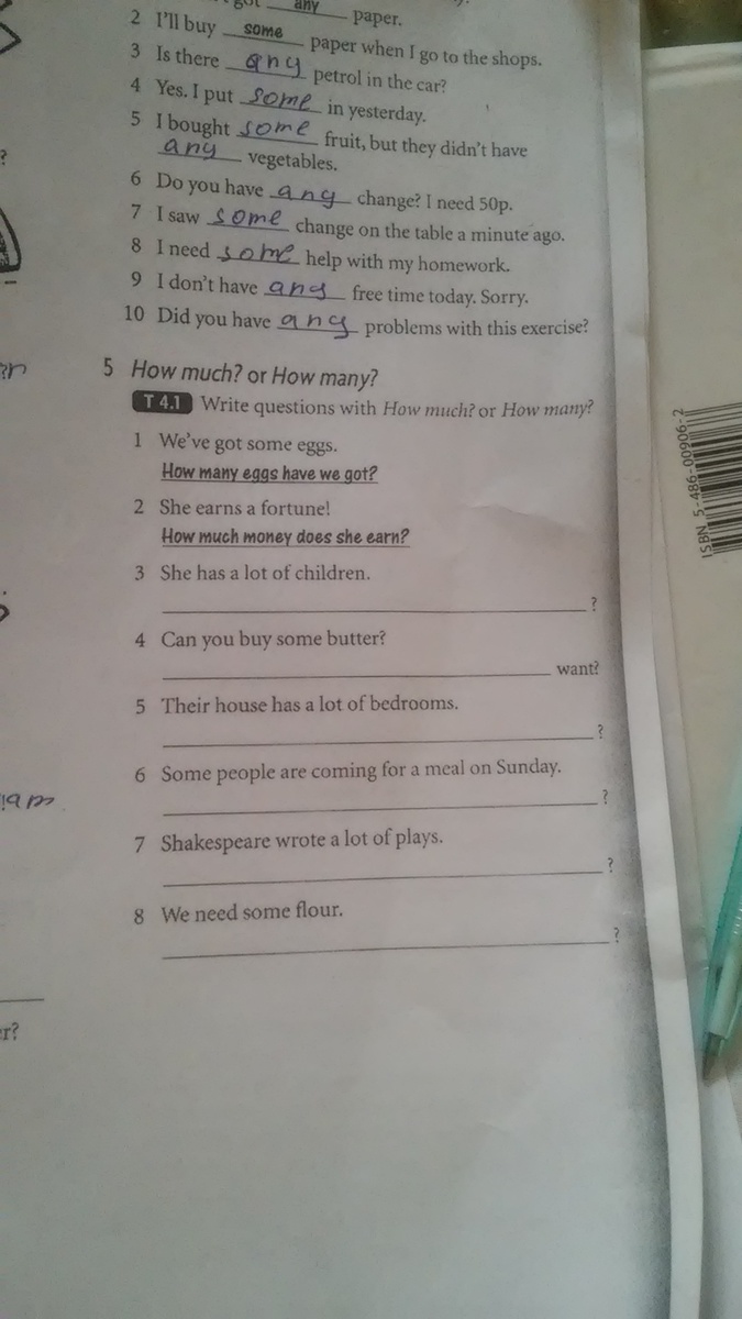 3.How many she children 4.How much you want.5.How many rooms this house.Покашто столько