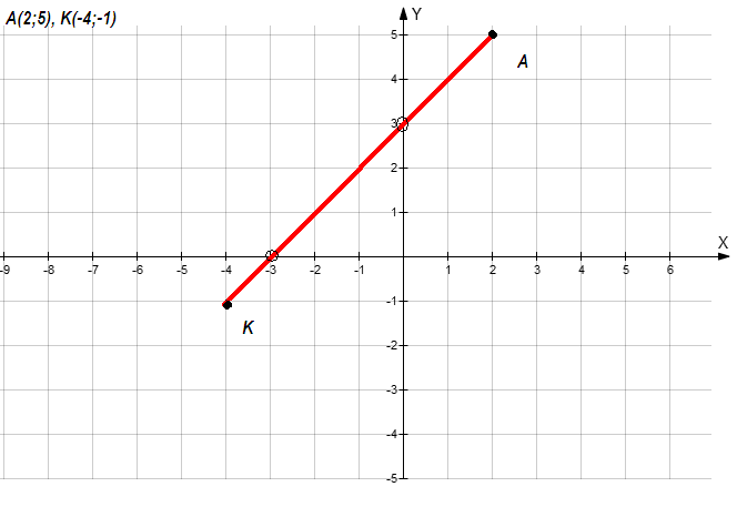 построй отрезок AK, где A(2;5), K(-4;-1), и запиши координаты точек пересечения этого отрезка с осями координат