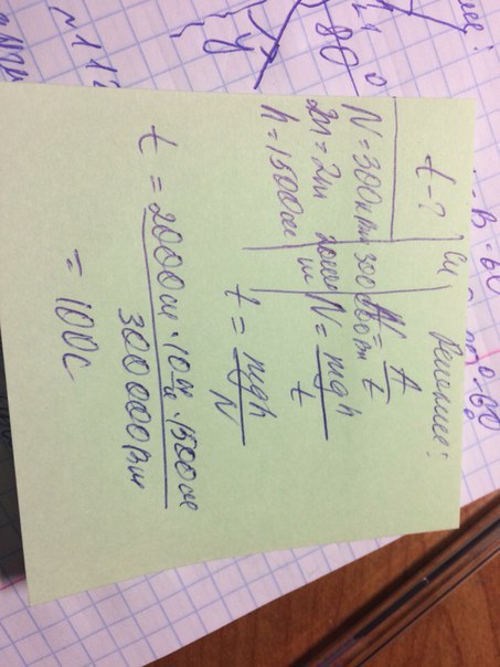мощность двигателя вертолета 300 квт. масса вертолета 2т. сколько времени потоебуется , чтобы подняться на высоту 1500м?