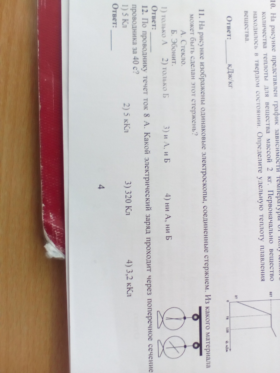 Стекло в твердом состоянии и эбонит не проводят электрический ток, поэтому палочка может быть как из стекла, так и из эбонита. Это значит ответ 3).