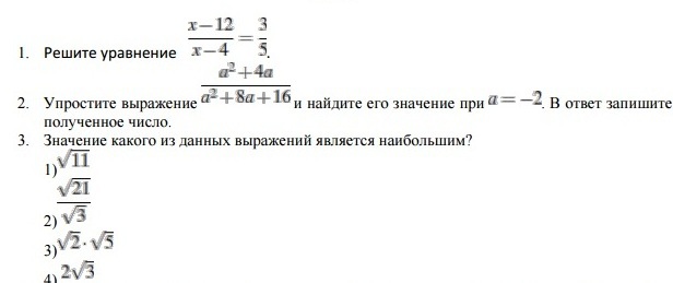 1) 5x - 60 = 3x - 12 (ОДЗ: x≠4)
