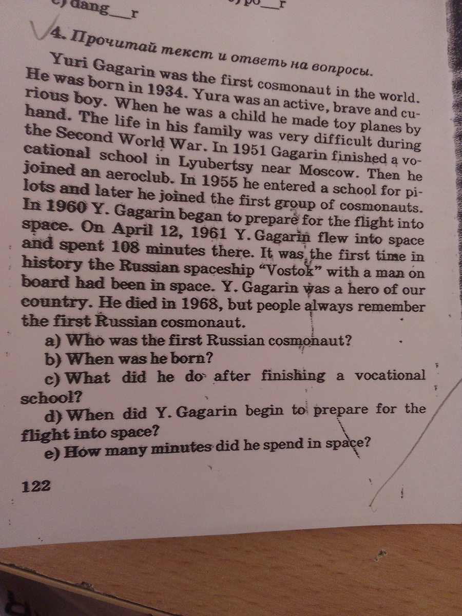 a) Yuri Gagarin was the first Russian cosmonaut.