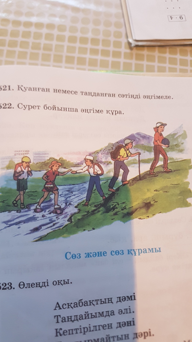 Сүретке мұқият зер салсақ көктемде көкке шыққан бүлдіршіндерді көреміз.ОЛАР табиғат аясын саяхаттауға бара жатқан секілді. Жол азығын қамтып тау бөктеріне шығуда .Ерінбестен жер ананы танып білуге бара жатыр .
